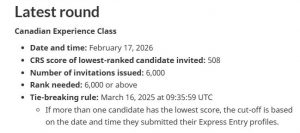 – Canadian Experience Class (CEC) Draw: 6,000 ITAs (thư mời nộp định cư)